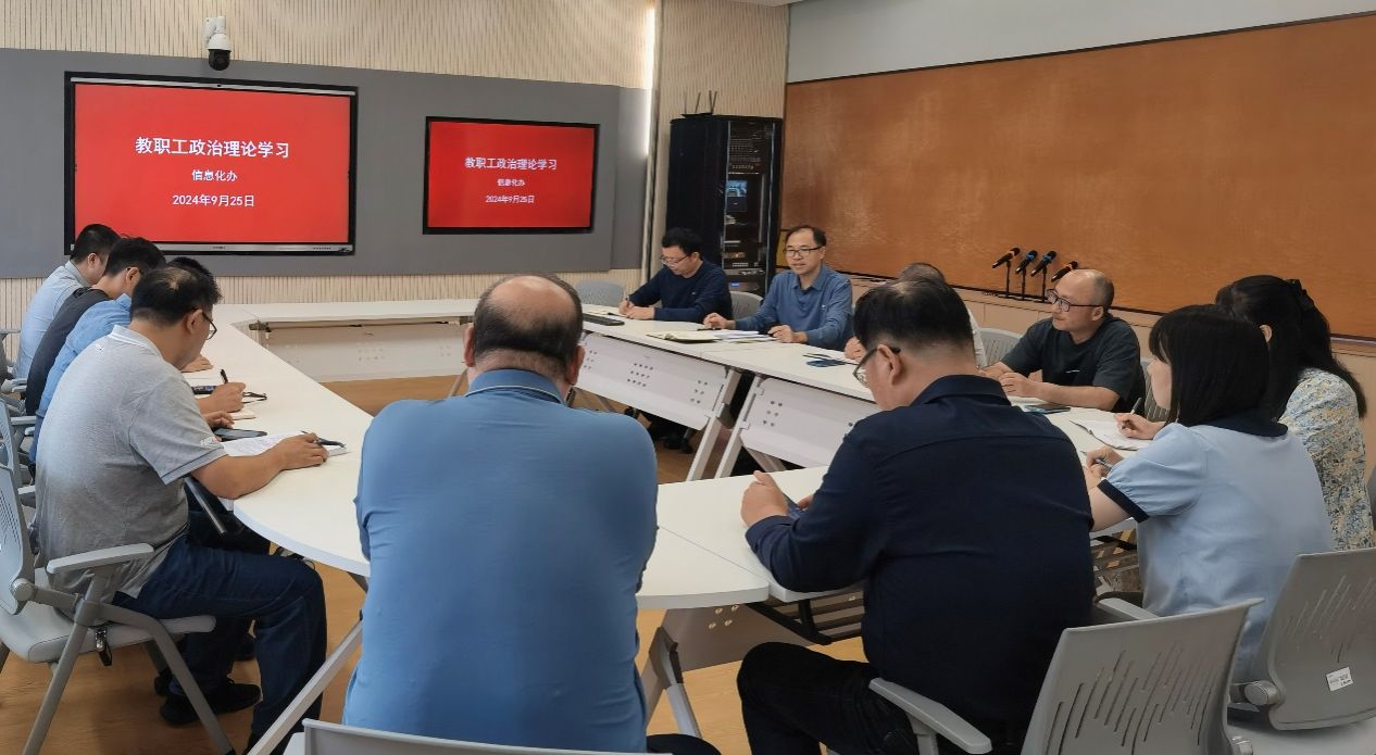 9月25日下午,信息化建设与管理办公室召开教职工政治理论学习会议,会议由信息化办主任王益群主持。信息化办全体人员参加会议。